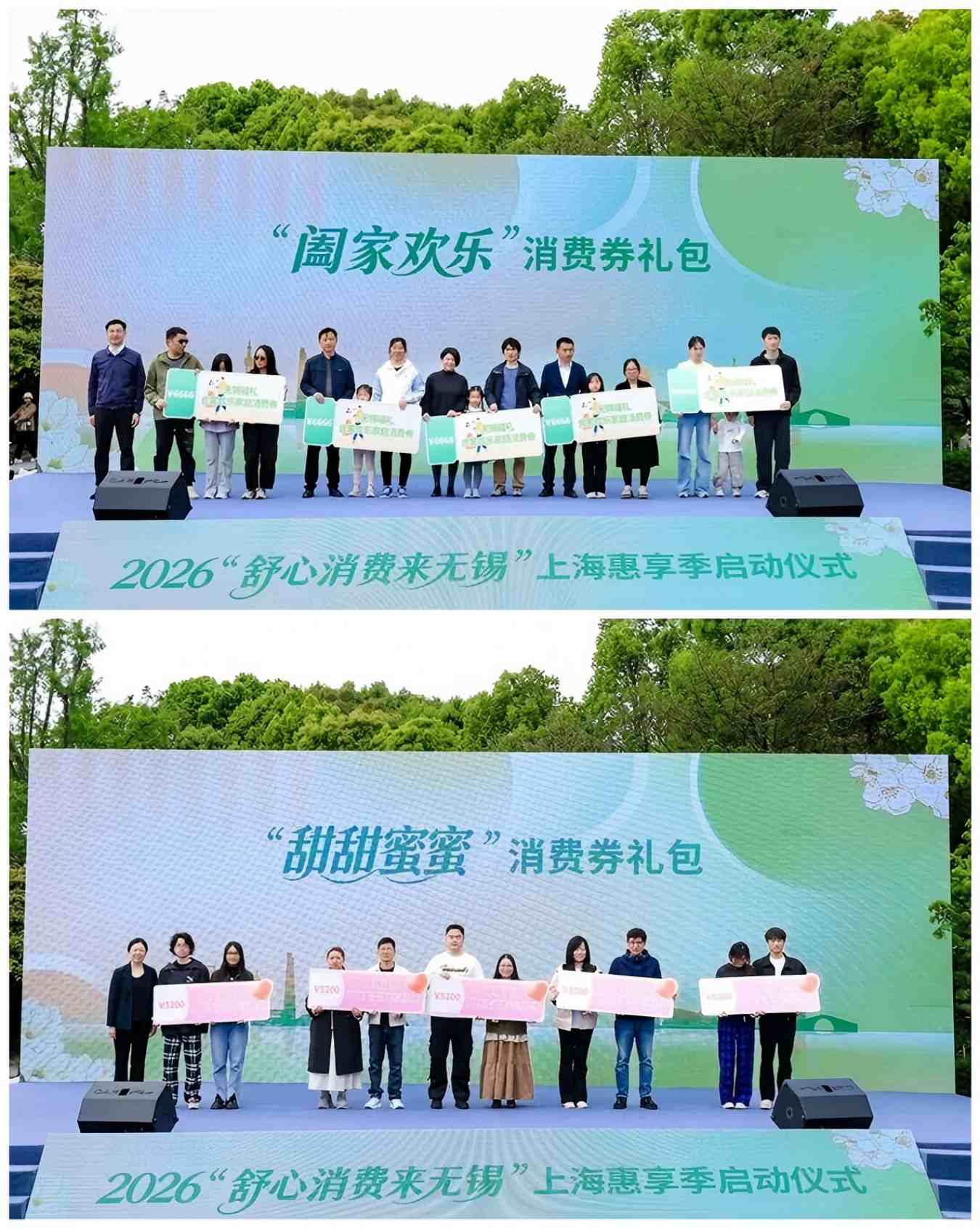 活动现场,无锡各区域结合自身优势,推出一系列“舒心消费·慢生活津贴”,涵盖餐饮、住宿、零售、文旅等多个领域。江阴推出“我是厨神”28家获奖餐饮名店的“春季宴”专属折扣;宜兴准备了46家口碑餐饮和38家品质住宿的“美食美宿”专属券包;梁溪送上“人间梁溪,慢享时光”系列消费券;锡山捧出千万汽车消费券与打车补贴;惠山五大主题福利覆盖全场景;滨湖区主打“上海消费优惠礼包”;新吴区四大专属优惠诚意满满。此外,情侣代表和家庭代表分别领到价值5200元的“甜甜蜜蜜”消费券礼包和价值6666元的“阖家欢乐”消费券礼包,现场气氛热烈。