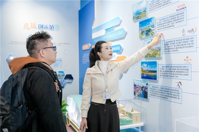 从芯光电路到昆曲水袖,从量子奇境到AR合影,这个藏在虹桥站里的展厅就像个神奇的时空转换器。旅客们在这里留下的不仅是欢声笑语,更是一颗颗期待再次相遇的种子。毕竟,谁能拒绝一个既文艺又充满科技魅力的昆山高新区呢?(詹佳怡)