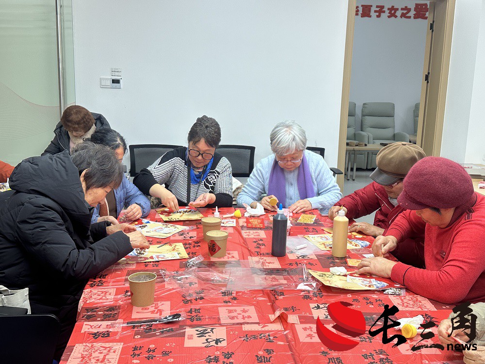 手工区里,同样热闹非凡。养老机构的老年朋友们围坐一桌,专注投入地进行珍珠贴画创作、写新春对联。指尖翻飞间,一个个色彩鲜亮的新春图案跃然纸上,既洋溢着新春的喜庆,又藏着老年朋友们的巧思与欢喜。大家互相展示成果,欢声笑语不断。