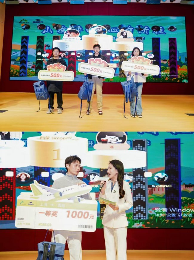 悠扬的郁金香故乡、河湟花儿香让原汁原味的青海非遗音乐响彻礼堂,展示了国家级非遗项目的独特魅力,民族歌舞《和美家园》则呈现了青海各民族交往交流交融的和谐图景。而紧张刺激的“摇一摇抽奖”环节,则将现场气氛推向一波又一波的高潮,学子们奋力摇动手机,在争夺幸运奖品的同时,也将“大美青海”的品牌印象深深烙印在心中。活动还通过图片直播的方式扩大宣传覆盖面,让更多学子感受青海文旅魅力。