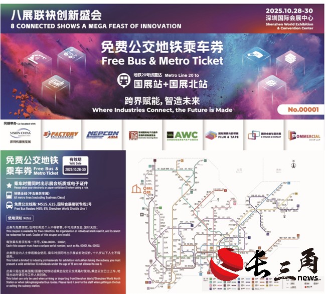主办方在开展期间特别为前来展会的参展商和观众提供免费公交地铁乘车券,凭您的“2025亚洲工业科技展