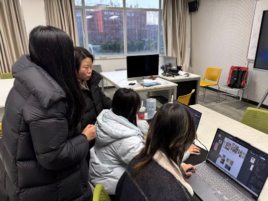 图1:团队成员在设计教室协同推进方案打磨、优化视觉稿件