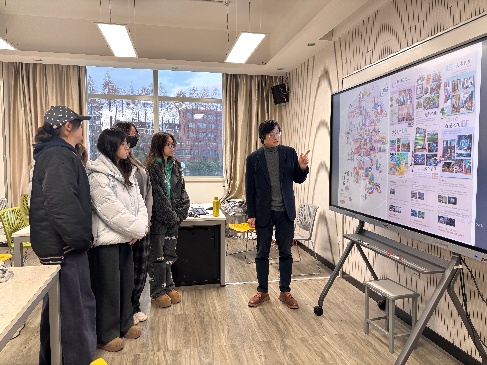 图4:指导老师为团队讲解徐家汇探秘打卡地图整体设计与落地细节