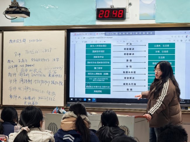 宣讲结束后,24名同学主动填写“梦想约定卡”,写下对南师的向往和自己的奋斗目标。班主任张兵老师表示:“资助政策的讲解特别实用,让一些有顾虑的学生放下了包袱,更敢想、更敢拼了。”