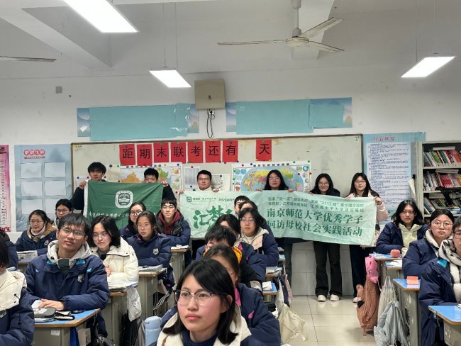 近日,南京师范大学“学生资助宣传大使”团队回到母校江苏省宝应中学,开展寒假资助政策宣讲活动。这支名为“应叫我师强悍”的团队由外国语学院、强化培养学院、历史文博学院、法学院等9名同学组成,其中线下宣讲成员均为2024届宝中毕业生。2月6日,他们走进高二(3)班北大班(文科实验班),为48名学弟学妹带来了一场温暖而务实的资助政策宣讲。