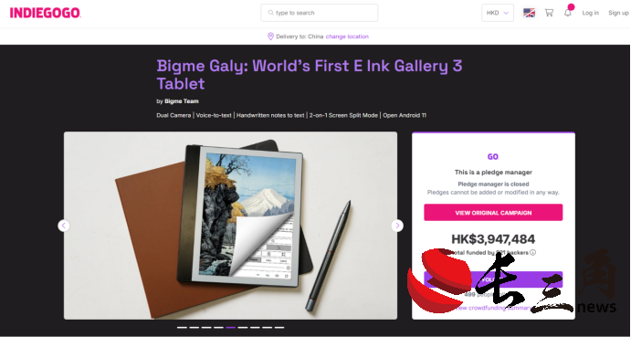 又发布了Galy(全球首款Gallery 3彩色墨水屏智能办公本)众筹近70万美元,把清晰度再次拉高。